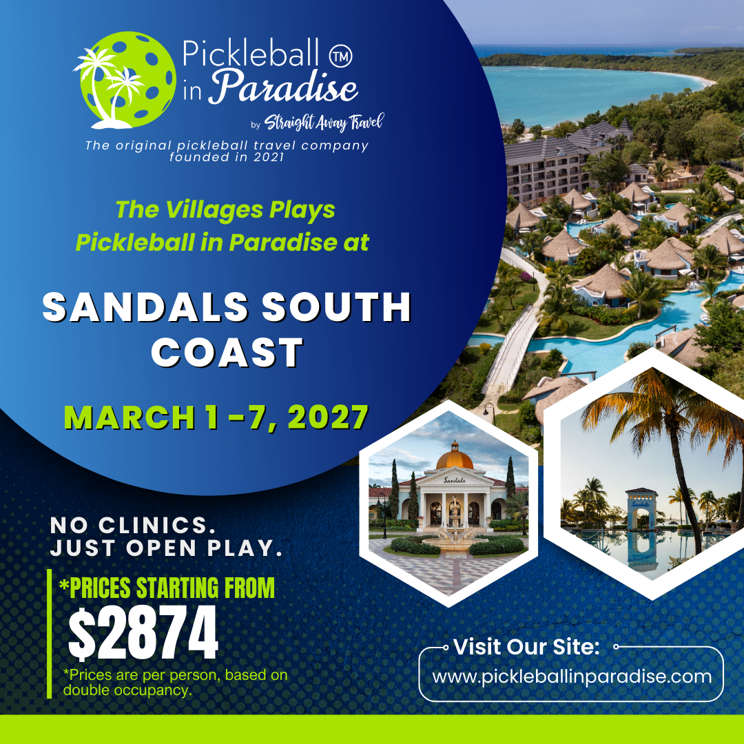 Join us for an all inclusive, 7 night trip to Sandals South Coast. Spots are currently open to BOTH Villagers/club members and non Villagers. All levels welcome as players will be broken into skill groups based upon skill ratings.